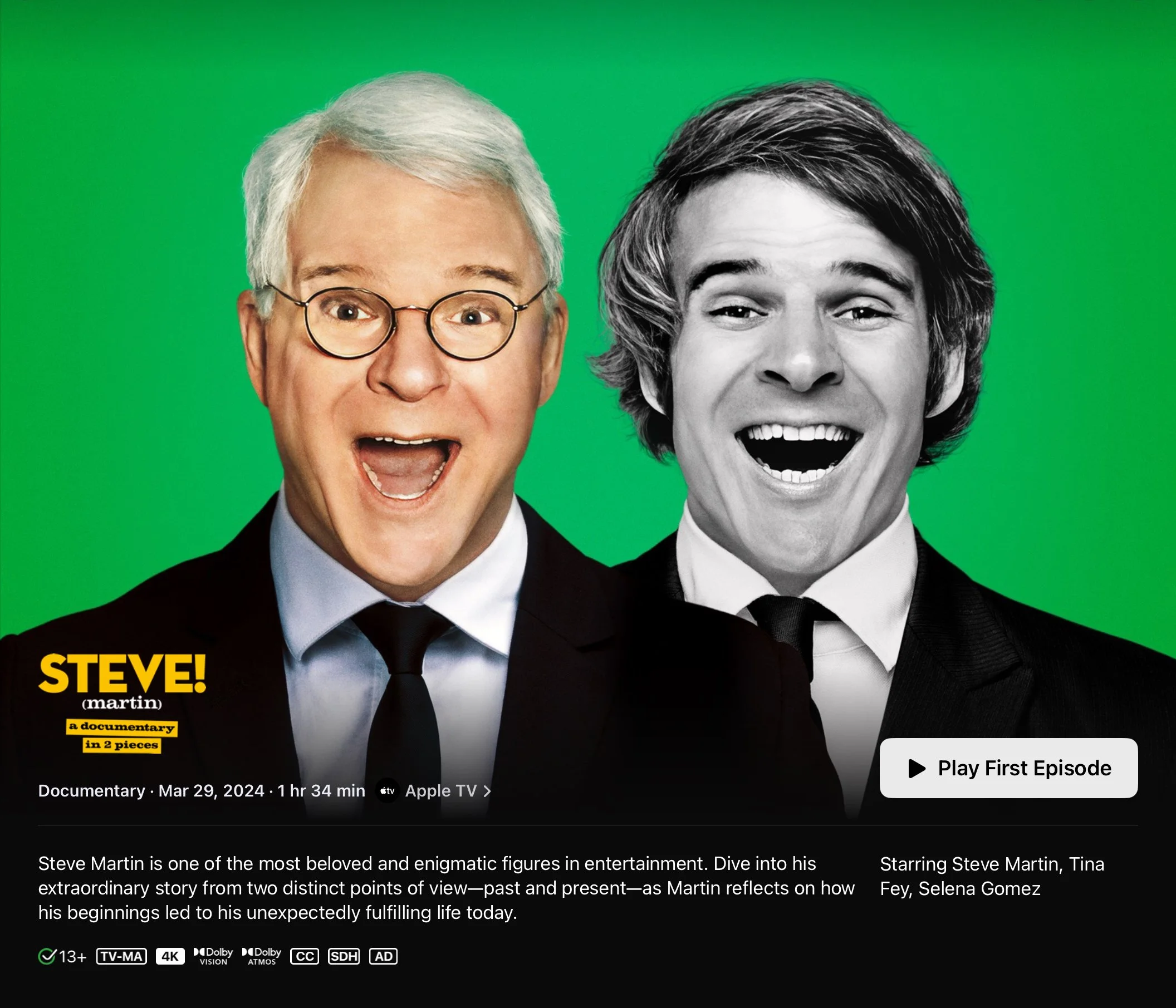 I’m not done watching it yet, but the Steve Martin documentary currently available on Apple TV is so wonderful that I can’t wait a second more to encourage anyone who stumbles upon this blog to watch it.